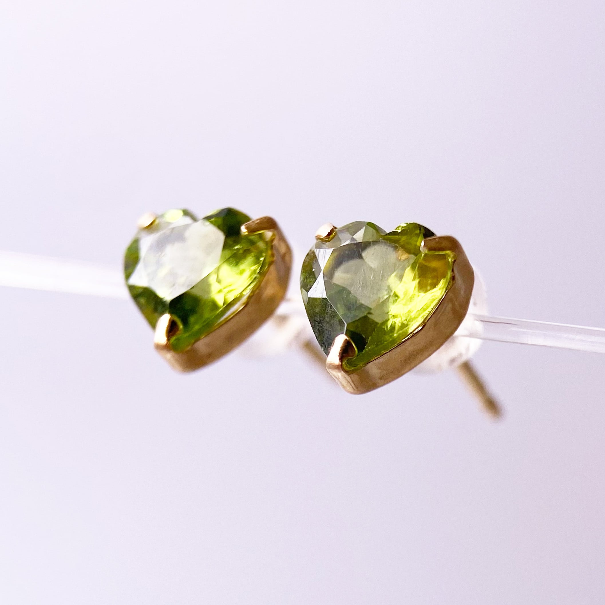 このK18YGペリドットピアスは、ハート型のペリドットが耳元で優しく揺れ、美しさを引き立てる魅力的なアイテムです。K18ゴールドの温かみのある輝きが、華やかさと程よいエレガンスを演出し、特別なおしゃれはもちろん、日常的なスタイルにもぴったりと溶け込みます。どんなシーンでも耳元を華やかに彩る、あなたの魅力を引き立てるアイテムです。